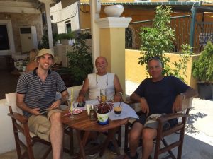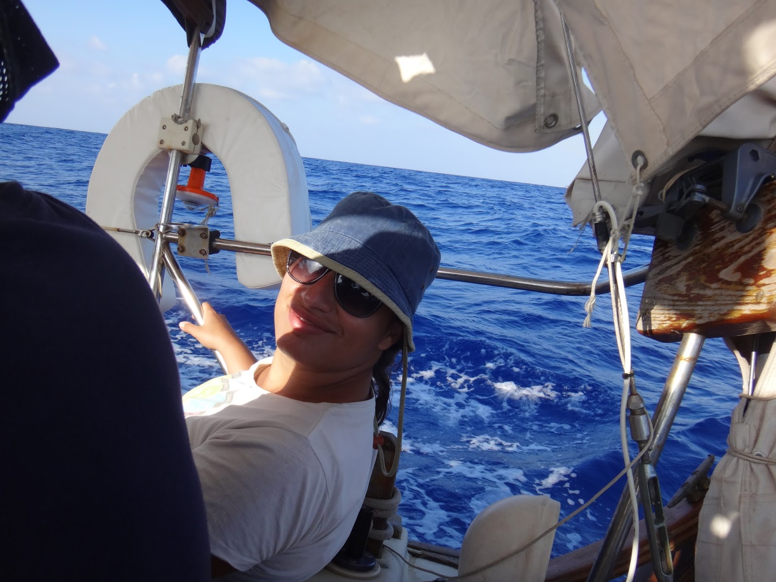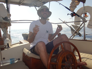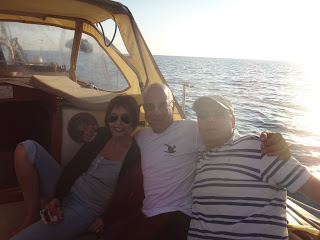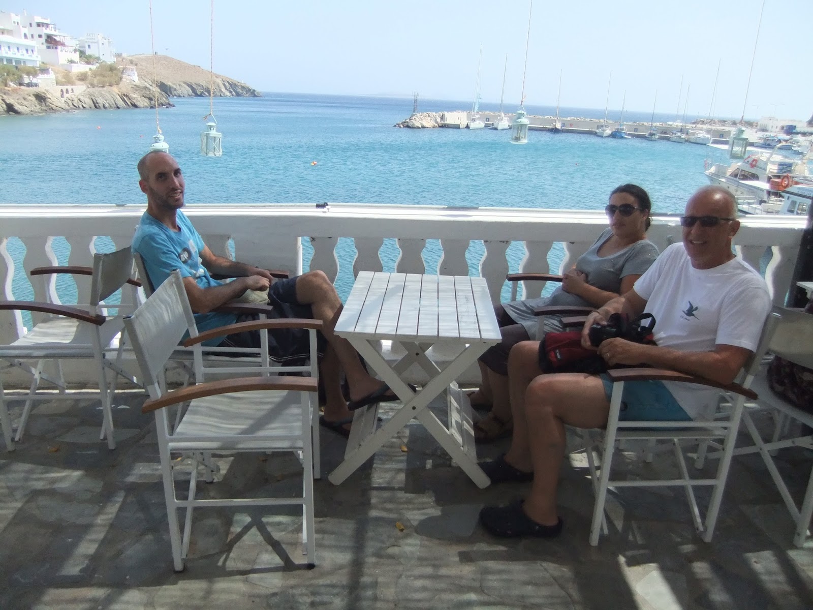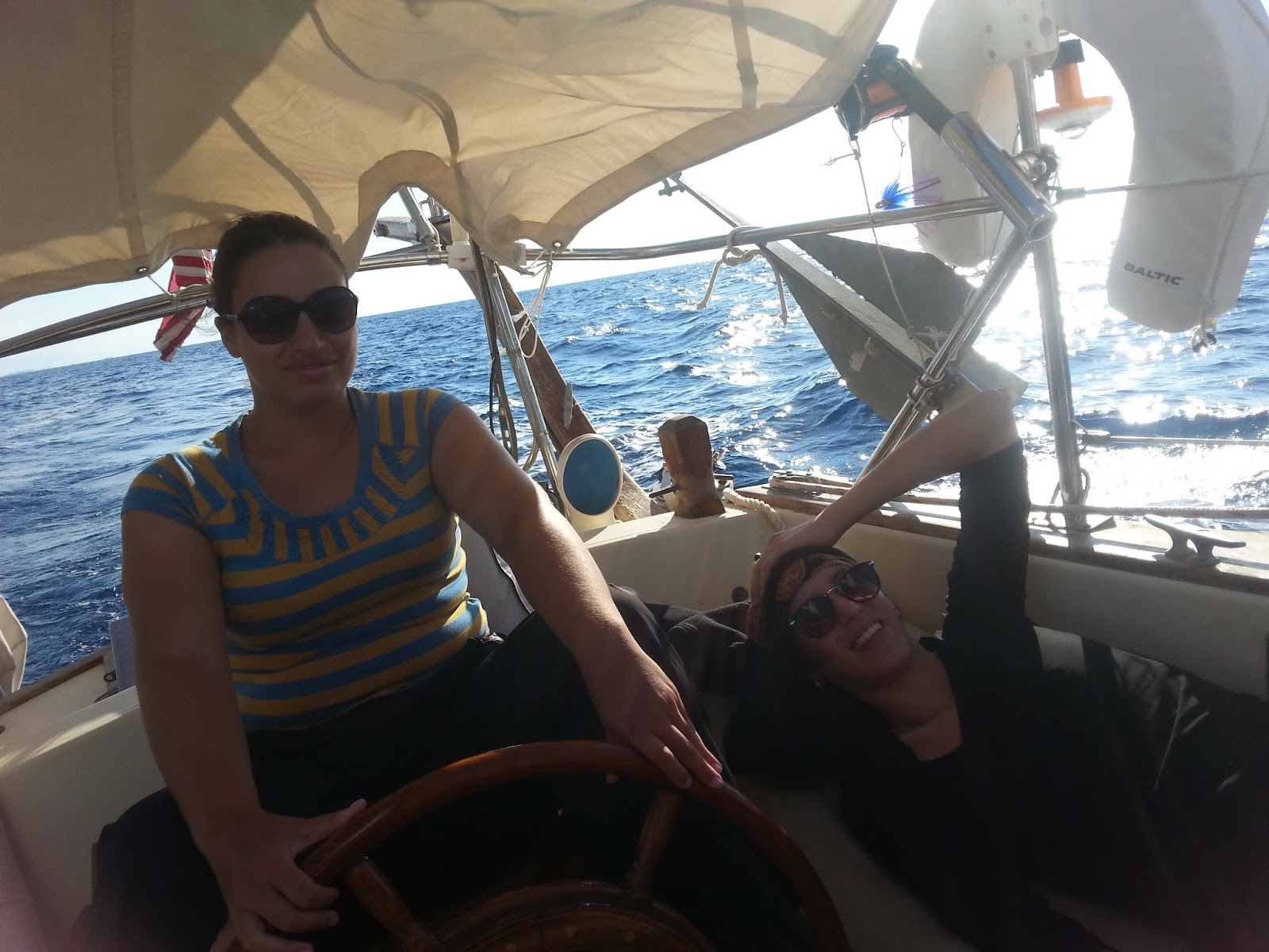 הים היה חלק והרוח גבית, כך שההפלגה היתה נוחה. רק עננים רחוקים הזכירו את הסערה של היום הקודם. בשעת צהריים מוקדמת ולא אופיינית לנו הגענו אל האי. טריזוניה הוא אי קטן וחמוד שנמצא קרוב מאוד לחוף ובו מתגוררים כ60 תושבים. יש בו מספר מלונות ומסעדות. המרינה שלו מרווחת אך גם לא גמורה, כלומר יש בורות ברציפים ואין שירותים מסודרים (אין גם דמי עגינה). בעודנו עושים סיבוב דאווין והתרשמות ומחפשים מקום עגינה במרינה המלאה למדי, שמנו לב לתורן שצץ לו ובולט מהמים החוצה. מבט קרוב יותר וסיבוב מהיר של ההגה הראו שמדובר במפרשית די גדולה שטבעה לפני 10 שנים ועדיין נשארה במקום שלה ליד הרציף. נקשרנו בעזרת שכנים וריפדנו היטב את הצד בגלל פיגומי הברזל שבלטו. במרינה יש סירות מכל מני סוגים, על חלקן הבעלים גרים ומעבירים את החורף, וחלקן סירות רפאים שננטשו או נשכחו מה שיצר אווירה קצת מוזרה. קפצנו לנשנש משהו וחיכנו ללירון אחותי שמצטרפת כאן למסע ובאותם רגעים היתה בדרכה אלינו באמצעות שלל אמצעי תחבורה יווניים (כולל זרים נחמדים). בתאום מושלם לירון ירדה מה -boat taxi שהביא אותה מהחוף ישר לארוחה במסעדה היחידה שהיתה פתוחה.