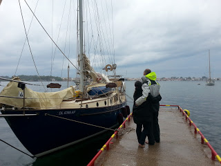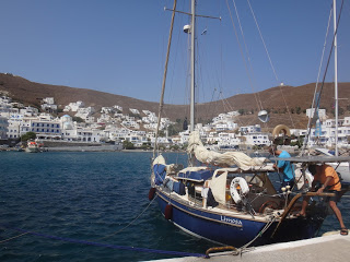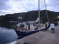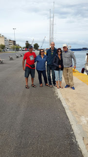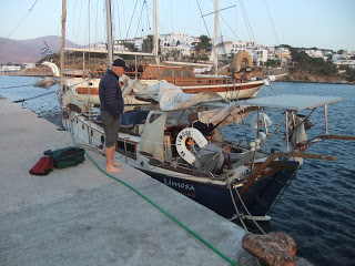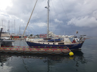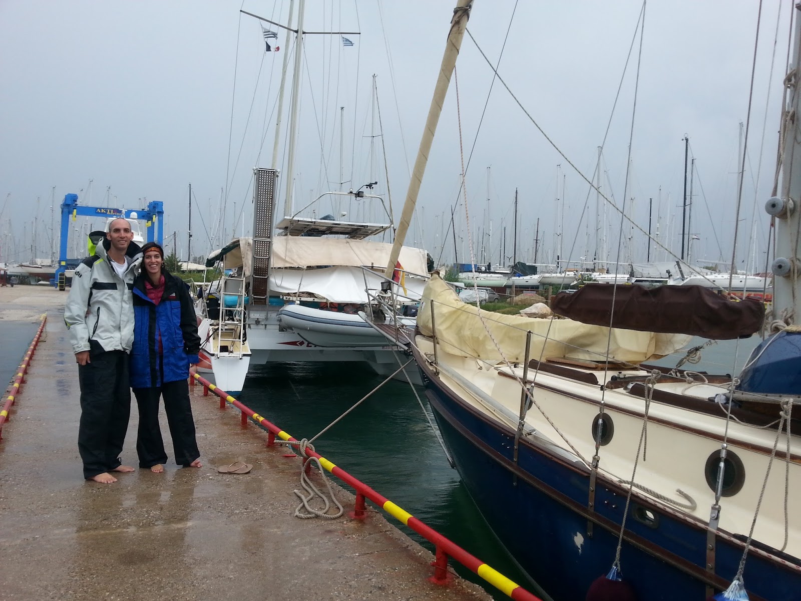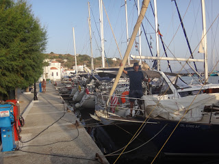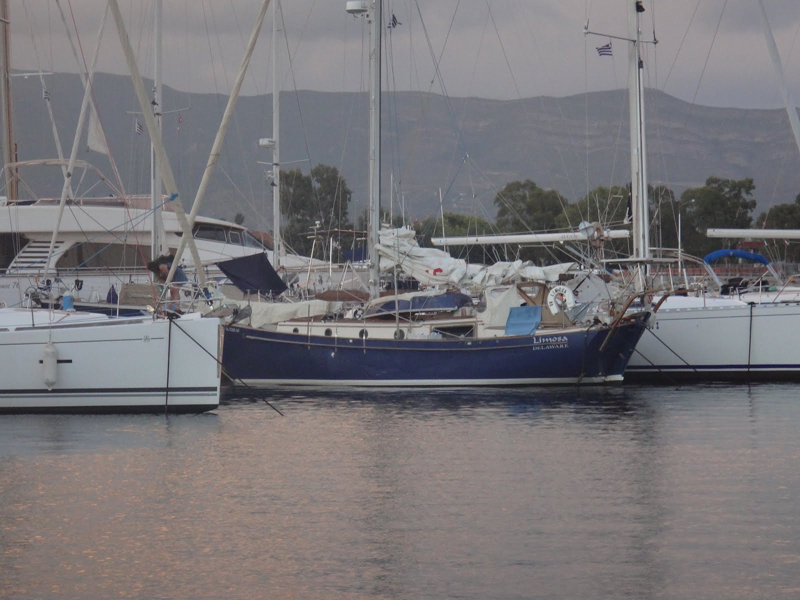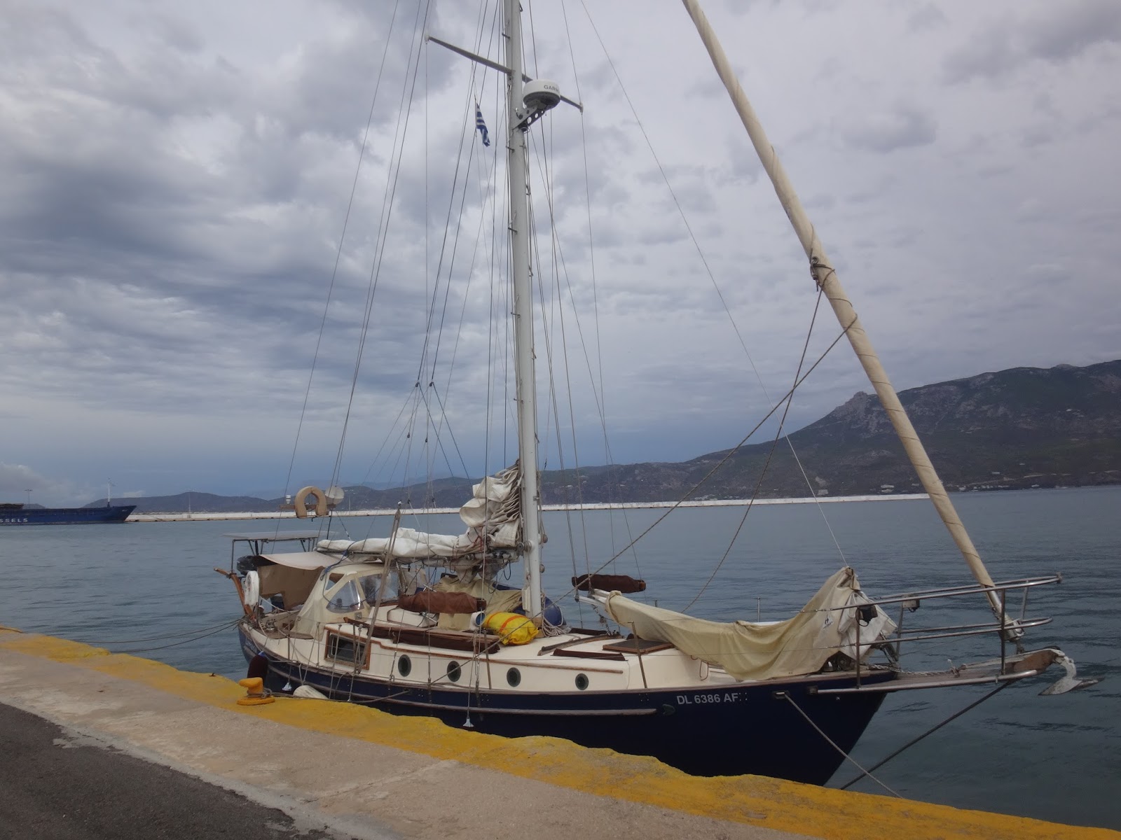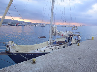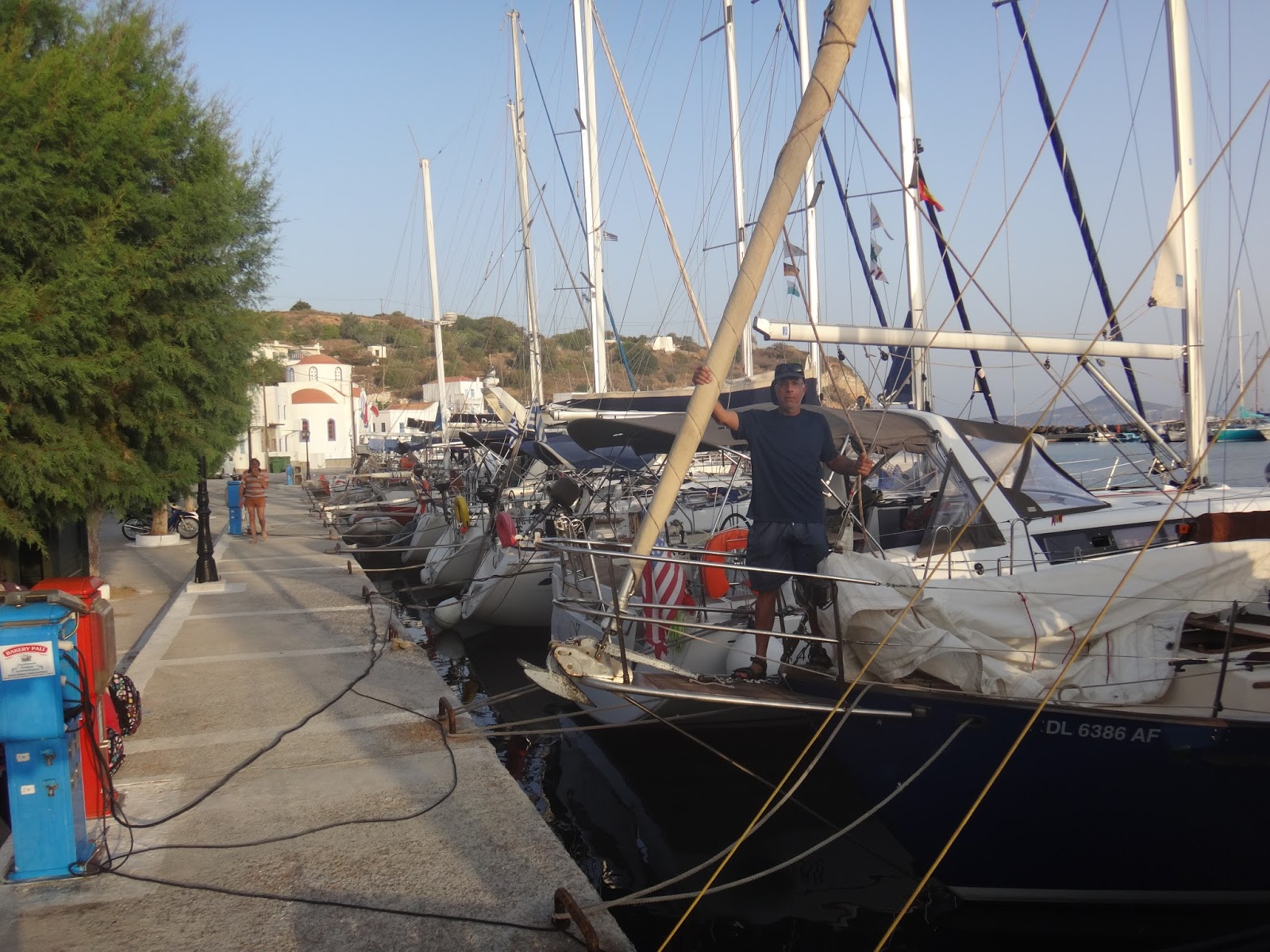 למספנה יש רציף קטן להיקשרות, והיה תור לפנינו של סירות על עוגן, אבל בגלל שנטע היתה צריכה לרדת לקראת הנסיעה שלה חזרה לאתונה, קיבלנו אישור להיקשר, מה שהיה נוח יותר ברוח ובגשם.