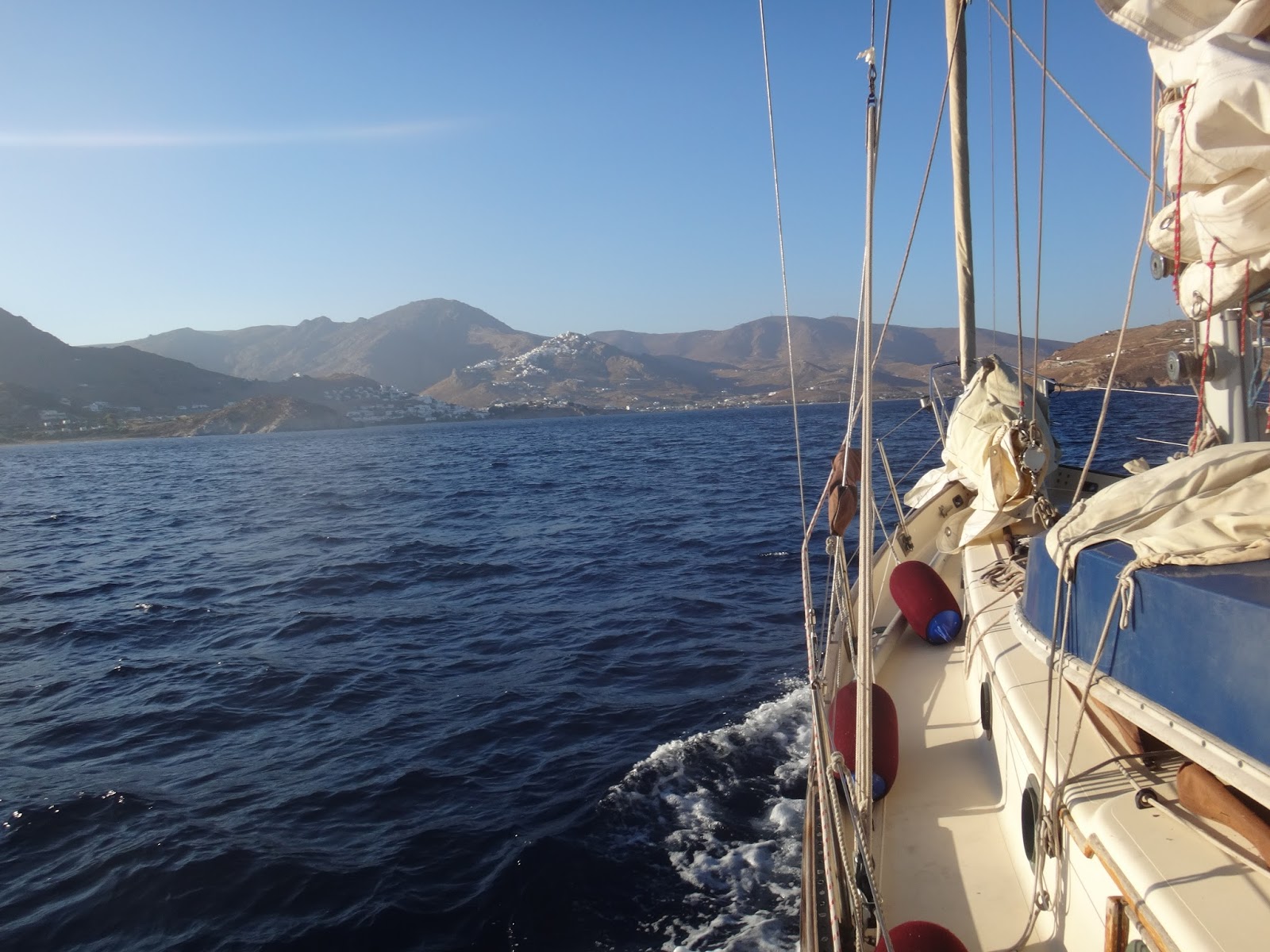 הים האיוני מוגן על ידי איים רבים וההפלגה בו רגועה יחסית. הוא משמש יעד נופש וניתן לראות סירות רבות, מפרשיות, מנועיות וסירות קטנות שטות בו במהלך היום. זו היתה גם הזדמנות לשים לב לחילופי הנוף היווני שעברנו במהלך המסע, מגבעות הטרשים הצחיחות במזרח ועד לאיזורים מיוערים בסגנון מרכז אירופאי שקיבלו את פנינו ככל שהתקדמנו מערבה.