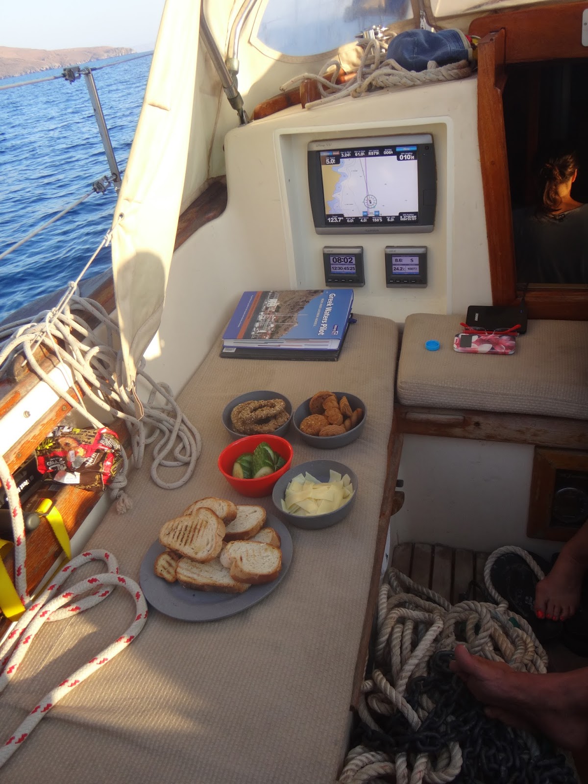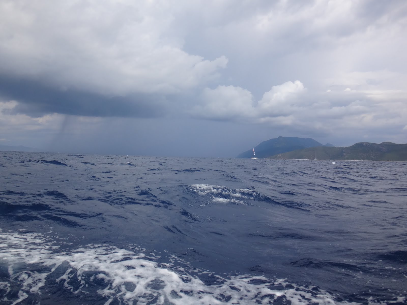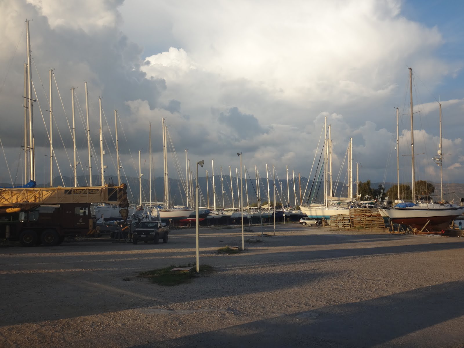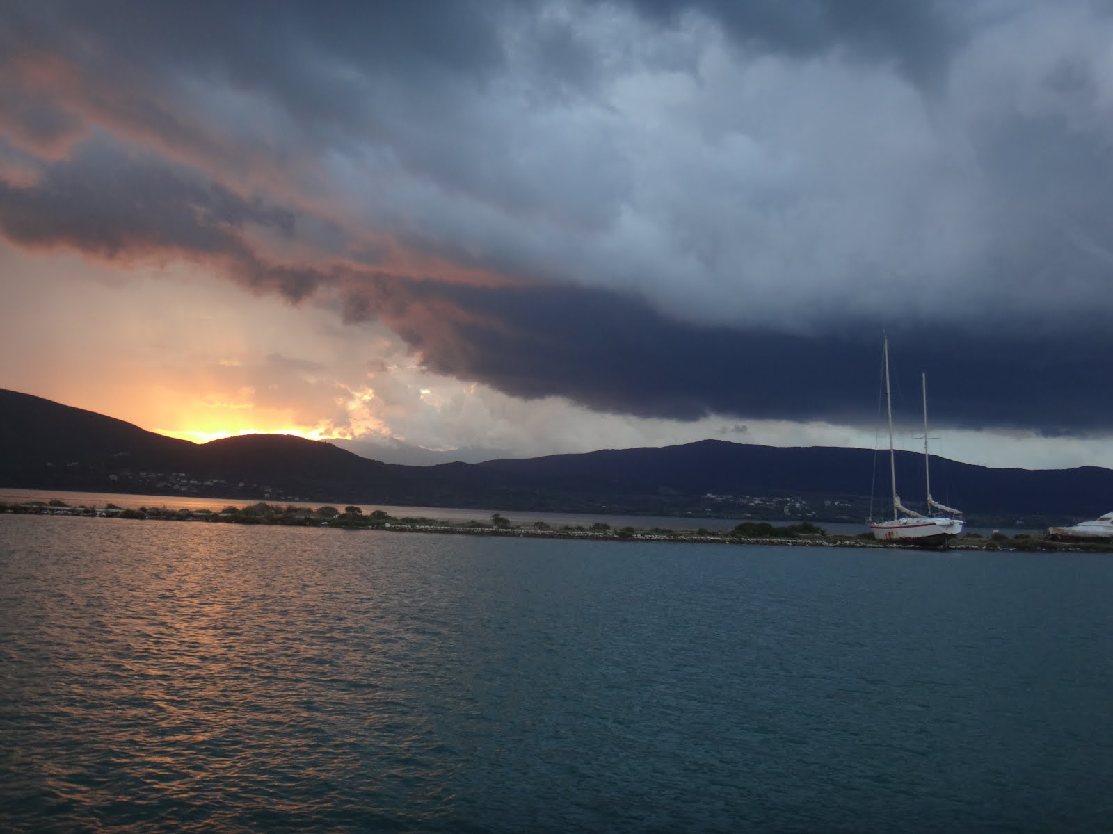 התחזית הראתה סערה המגיעה מדרום, וענני גשם התקדמו במהירות באופק. אחרי ההרפתקה בקורינת’ הכנו ישר את ביגוד הסערה ואמרנו לעננים-bring it. העננים, שיודעים מה טוב להם, שמרו על מרחק בטוח מאיתנו והגענו ללפקס עם ערב, ללא בדל גשם. הים עלה לאט אבל כיוון הגלים היה נוח (מדרום לצפון).