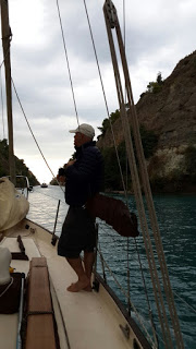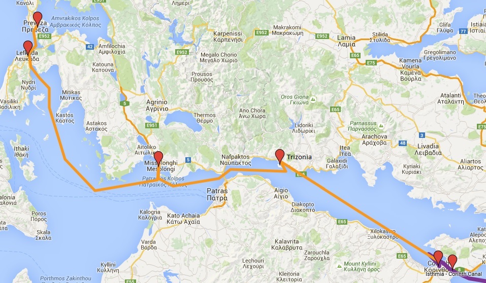 בפרק הקודם הגענו לעיר קורינת’ שבקצה המערבי של התעלה הקורינתית, וכל מי שעקב עד פה כבר יודע שזה מקום תעשייתי ומדכדך. הצוות (המכונה גם אבאמא ויוסי) עזב ונשארנו רק אני ונטע לקרוע את העיר או לפחות לעשות סיבוב ולחפש ריגושים. כצפוי כמעט הכל היה סגור והגשם חזר, לכן החלטנו לחזור לסירה. רצינו להזמין מיכלית תדלוק, אבל היינו קצת עייפים מאירועי היום, ובמקום קפצנו לשכן שעגן לידנו לקפה ומשקה חריף מסתורי. הסירה שלו קטנה ומתוקתקת, דוגמא טובה לכך שגודל הסירה צריך להתאים לצוות ולא כמה שיותר גדול זה יותר טוב. תומאס השכן (שהכרנו באותו הבוקר) הוא סופר גרמני שכותב על איים אבודים ותוך כדי מפליג לבד בסירה שלו. הוא מתמחה בקסטלוריזו, ותוך כדי שתיה החלפנו חוויות וסיפורים מהאי וההפלגה. לאחר מכן חזרנו ללימוסה ואירגנו אותה לקראת היציאה בבוקר. היתה התרגשות מסויימת גם בגלל מזג האוויר וגם בגלל שזאת ההפלגה הראשונה של שנינו לבד מאז הפעם הקודמת שהיינו ביוון. בבוקר קמנו ויצאנו לכוון האי טריזוניה (Trizonia).