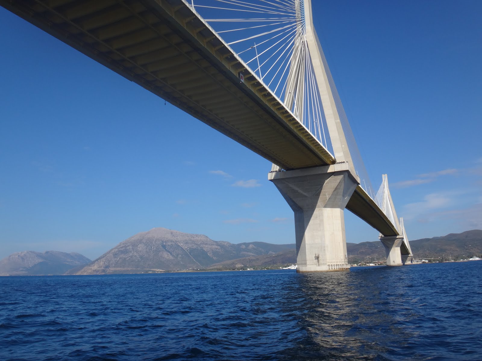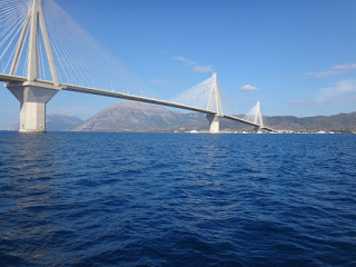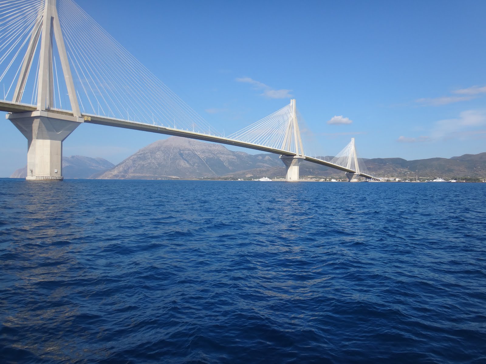 ההפלגה היתה נוחה והמשכנו להנות מהרוחות הגביות. במרחק כבר אפשר היה לראות את גשר ריו – אנטיריו (Rio – Antirrio). הגשר חוצה את מפרץ קורינת’ וגם מיצר אפקט וואו. כאשר מתקרבים אליו צריך לעלות מול האחראי בקשר, לספק את מידות הסירה ולקבל הנחיות מתחת לאיזה חלק של הגשר לעבור. אחרי שעוברים תחת הגשר נכנסים למפרץ פטרס. הזרמים דוחפים מערבה לכוון היציאה מהמפרץ. מסולונגי (Missolonghi) נמצאת בין שני נהרות, הכניסה אליה עוברת דרך תעלה ושדות מלח באורך מספר מיילים, מה שדורש עירנות לגבי עומק המים. המרינה עצמה עדיין בבניה ותכננו כאמור רק עצירה קצרה לתדלוק.בגלל המורכבות, הכניסה לקחה יותר זמן ממה שתכננו וכשנכנסנו למשרד, הפקידה אמרה (בצורה לא נחמדה כל כך) שאנחנו צריכים לשלם בכל מקרה על לילה. משום כך החלטנו כבר להישאר , והעברנו את הזמן בסיור ושוטטות בין הסירות הרבות שמאוחסנות ומוספנות במסלונגי. בערב הכנו ארוחה תוך נסיון להתחיל לסיים את כמויות האוכל המרשימות שעדיין היו לנו, כשבראש עדיין זיכרון הבורי שהובטח על ידי יוסי וטרם סופק.