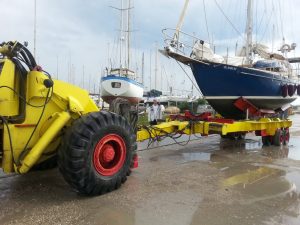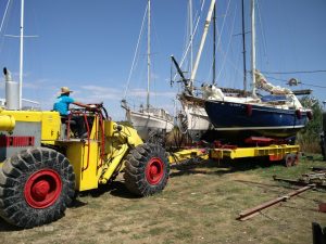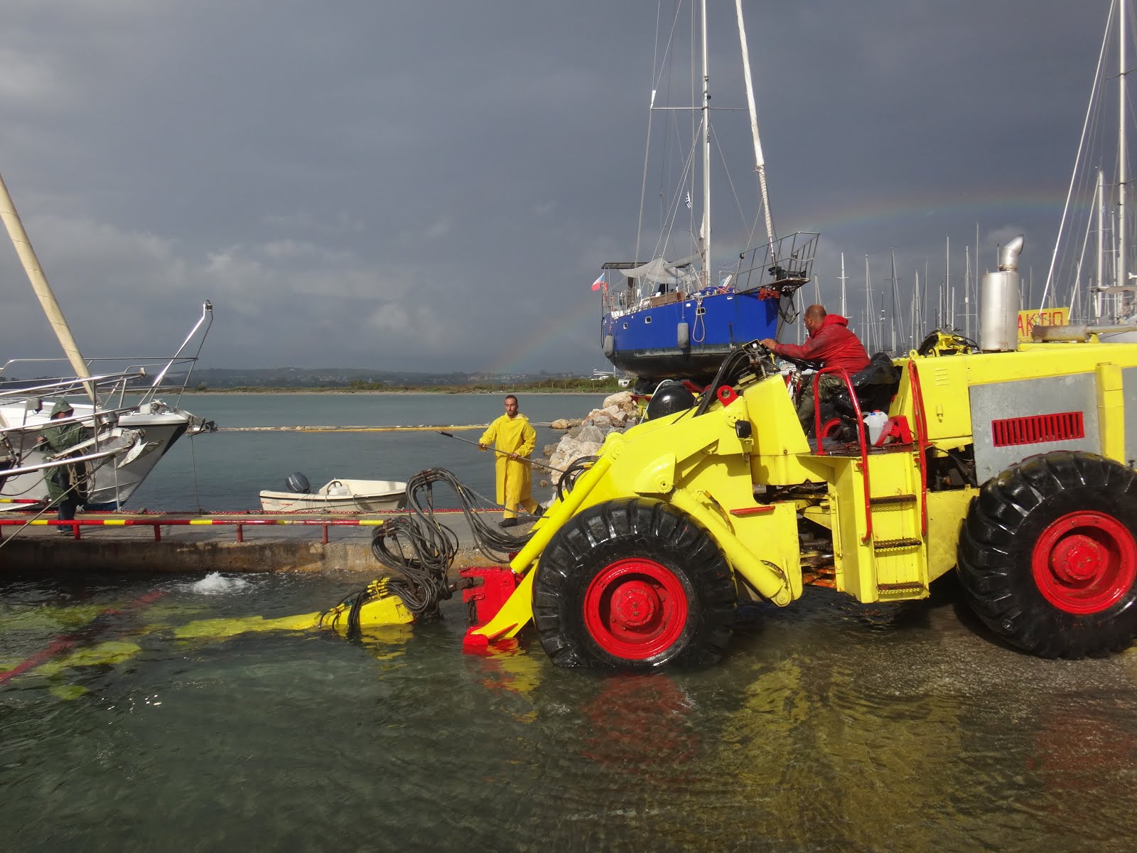באקטיו מעלים את הסירות מהמים באמצעות טרקטור ועריסה. יש להם גם מנוף אבל הוא משמש להעלאת סירות גדולות יותר. בזמן ההמתנה לירון דאגה לחביתות ובדיוק כשהן היו מוכנות הגיע תורנו לעלות. נכנסו ל”מזלג” ולימוסה, בסיומו של מסע של כמעט אלף מייל, יצאה מהמים.